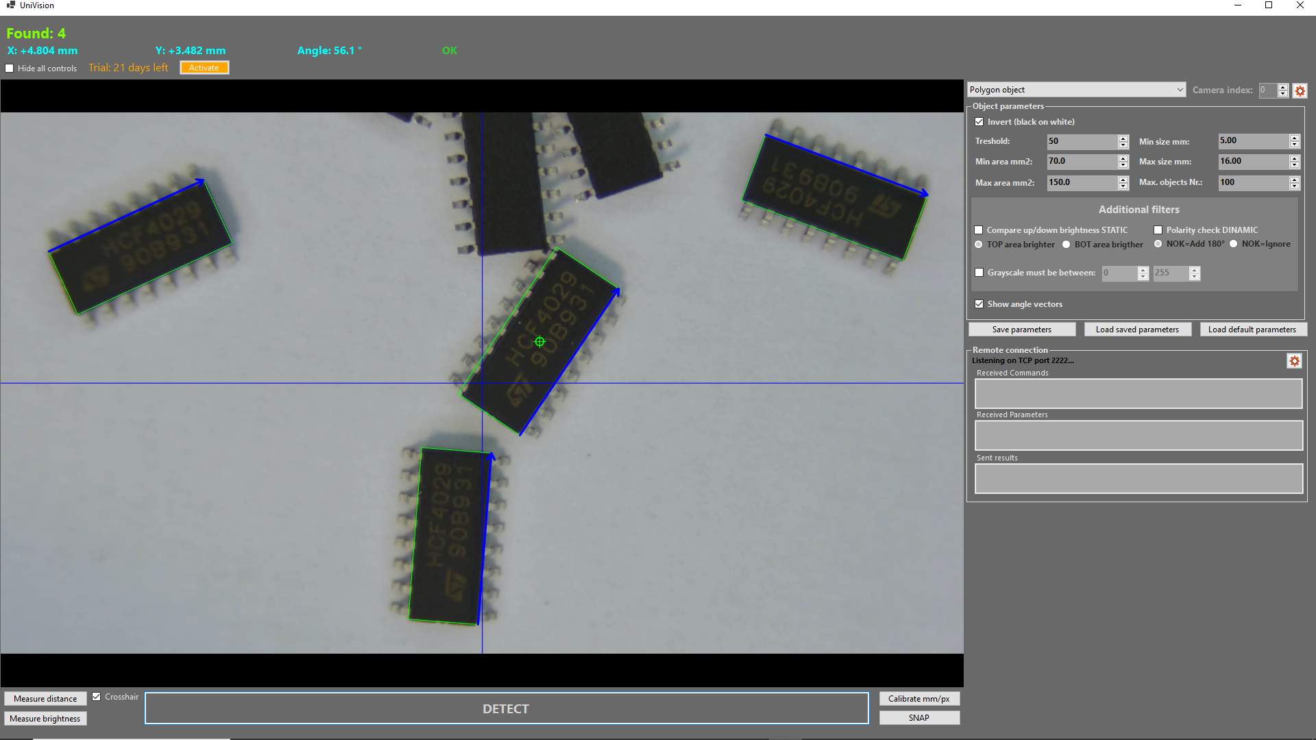 UniVision can detect larger components and accurately determine their coordinates and orientation.