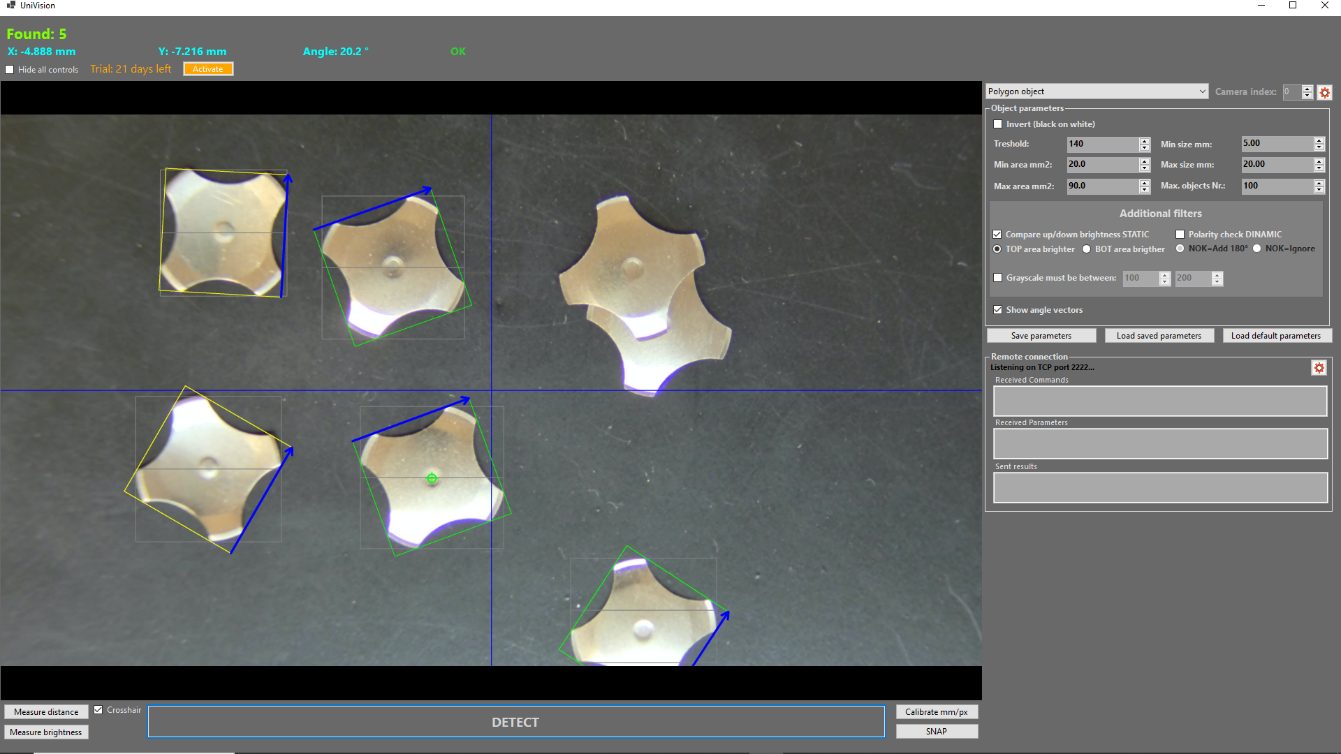The software accurately provides the coordinates and orientation of each correctly positioned part, allowing for efficient selection and precise handling in automated systems.