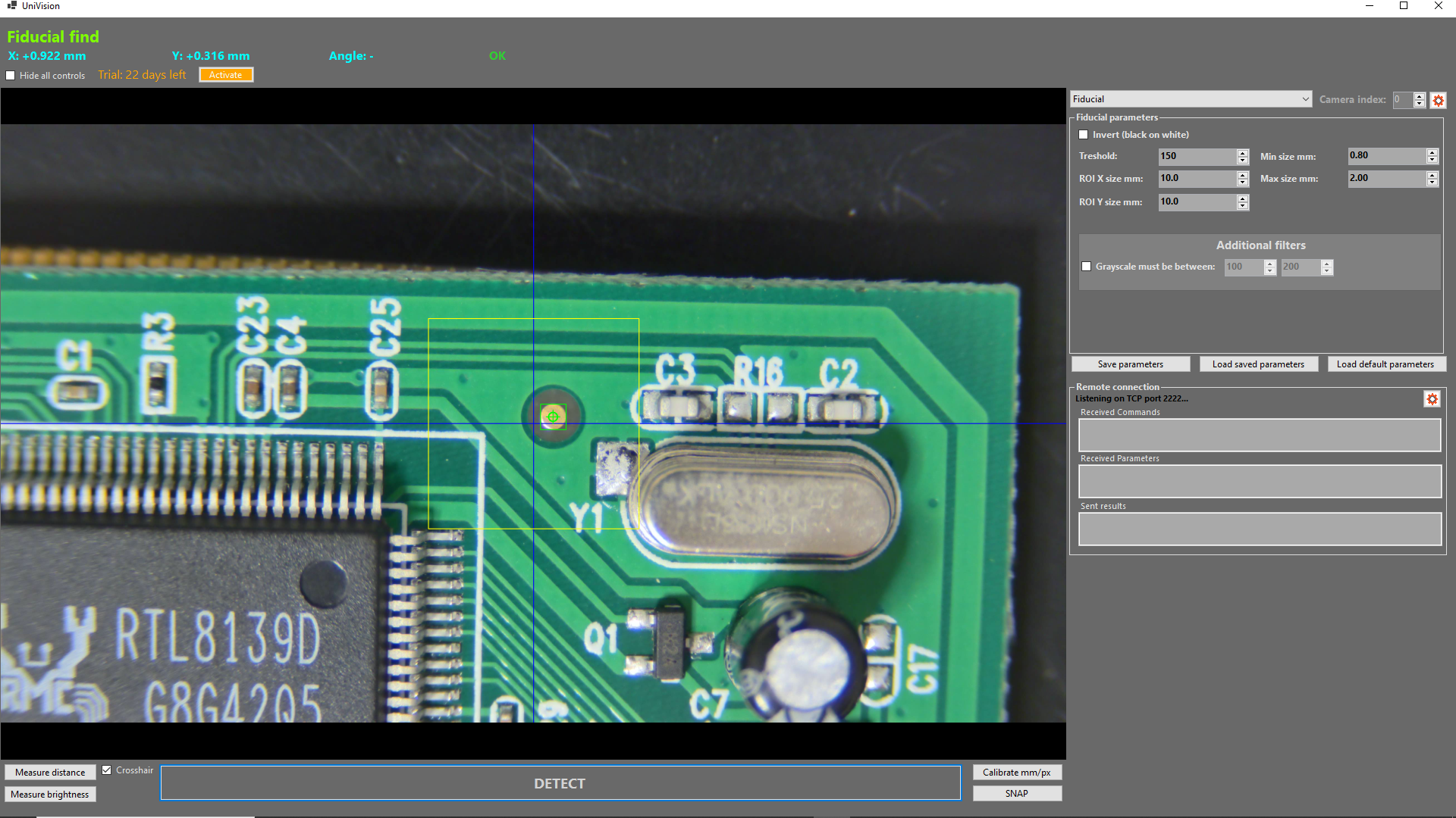 UniVision reliably detects fiducial marks on printed circuit boards (PCBs) and other materials.