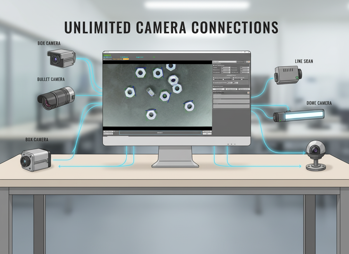 UniVision supports connection to an unlimited number of industrial cameras, allowing you to build flexible and scalable vision systems.